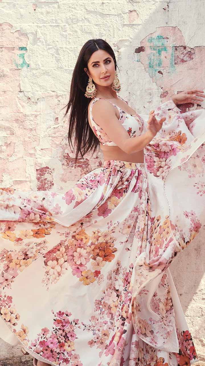 इस भयानक गर्मा में कटरीना का ये व्हाइट फ्लोरल लहंगा आपको काफी कंफर्टेबल लगेगा।