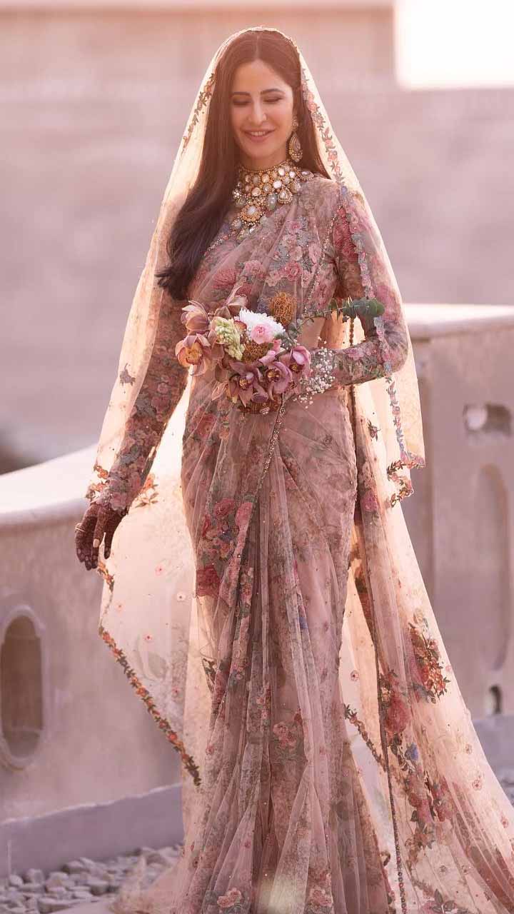 कटरीना कैफ ने ये फ्लोरल साड़ी अपनी शादी के फंक्शन में पहनी थी। जिसे इनकी स्माइल ने और भी खूबसूरत बना दिया।