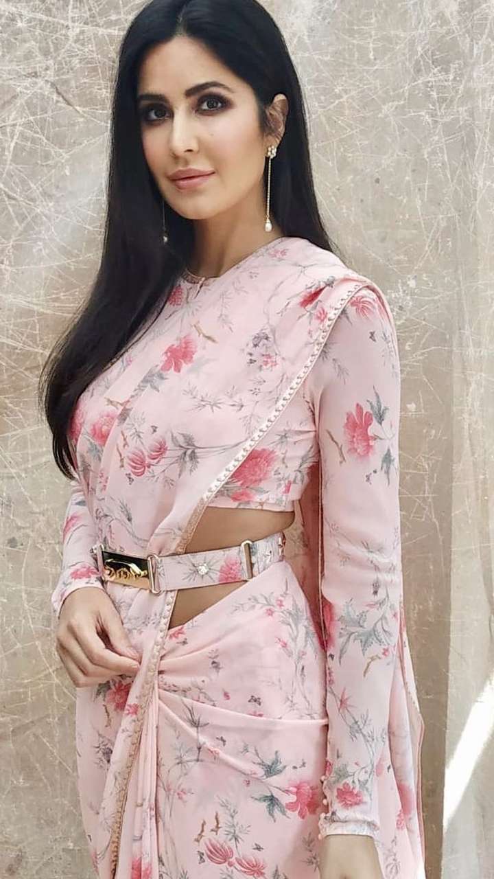 पिंक कलर की फ्लावर प्रिंटेड साड़ी में एक्ट्रेस सुंदर लग रहीं हैं। साड़ी के साथ कटरीना ने मैचिंग का बेल्ट पहना है।