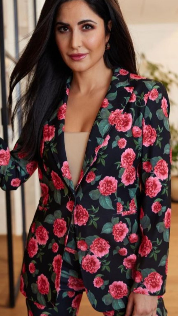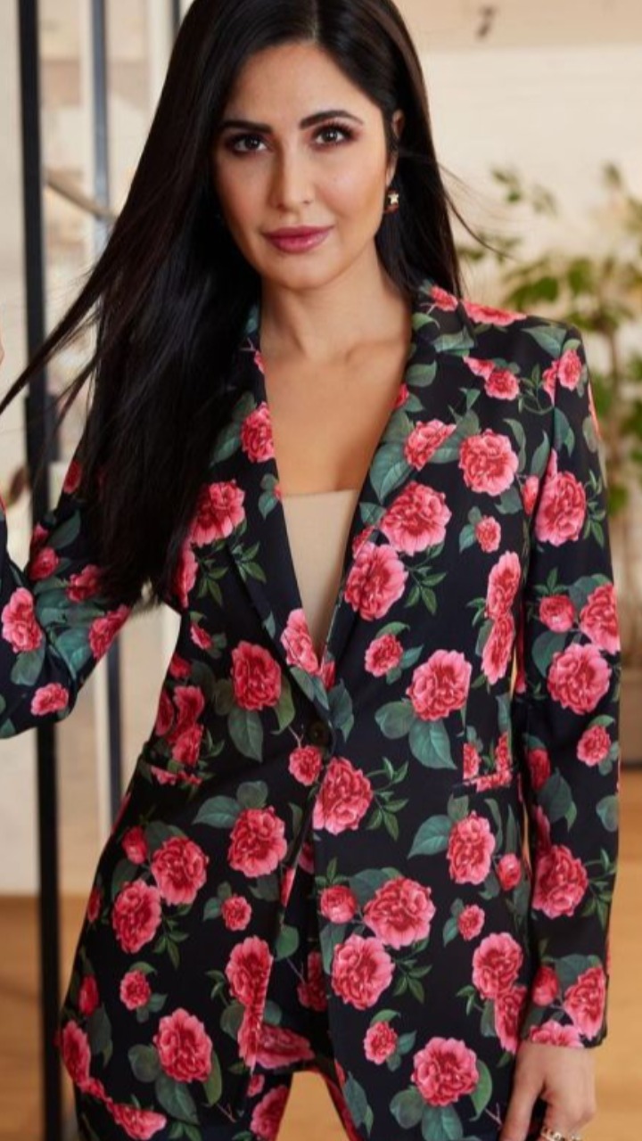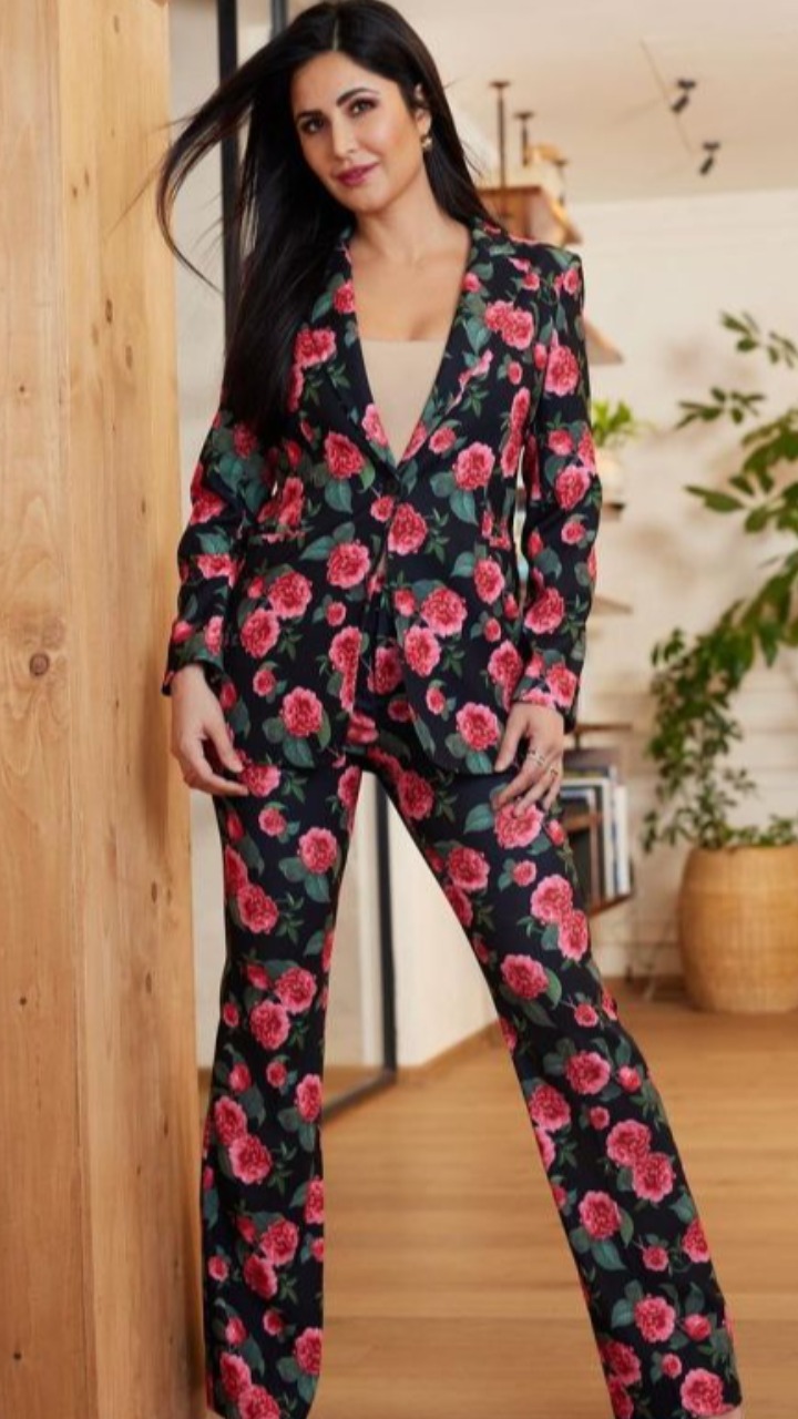 कटरीना इस फ्लोरल प्रिंट पेंटसूट आउटफिट में बेहद चार्मिग दिख रही हैं। वही एक्ट्रेस ने ग्लॉसी मेकअप से अपने लुक कंप्लीट किया है।