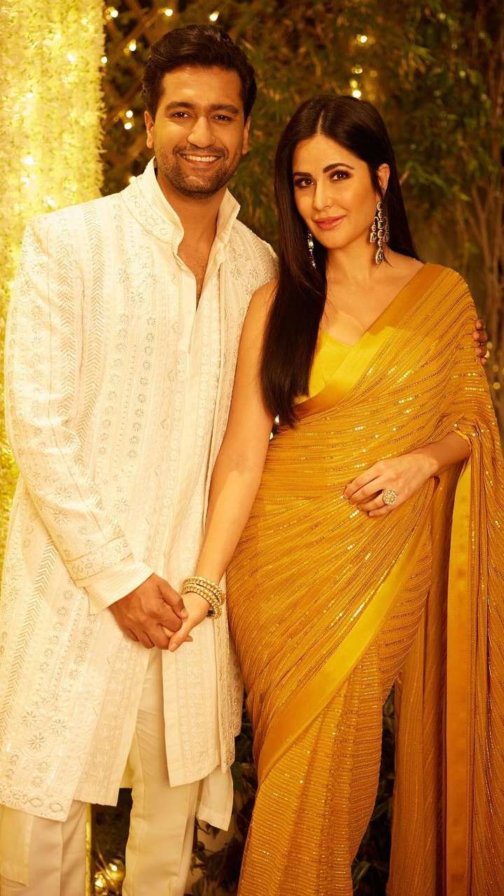 कटरीना येलो साड़ी में विक्की कौशल संग फैंस के दिलों को धड़का रही हैं।