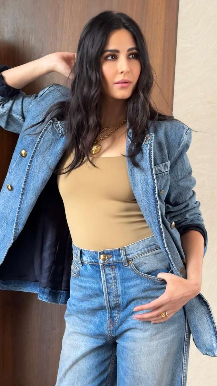 कटरीना इस डेनिम जींस, जैकिट और वुलन टॉप में काफी बोल्ड लग रही हैं। उनका ये लुक विंटर के लिए बेस्ट है।