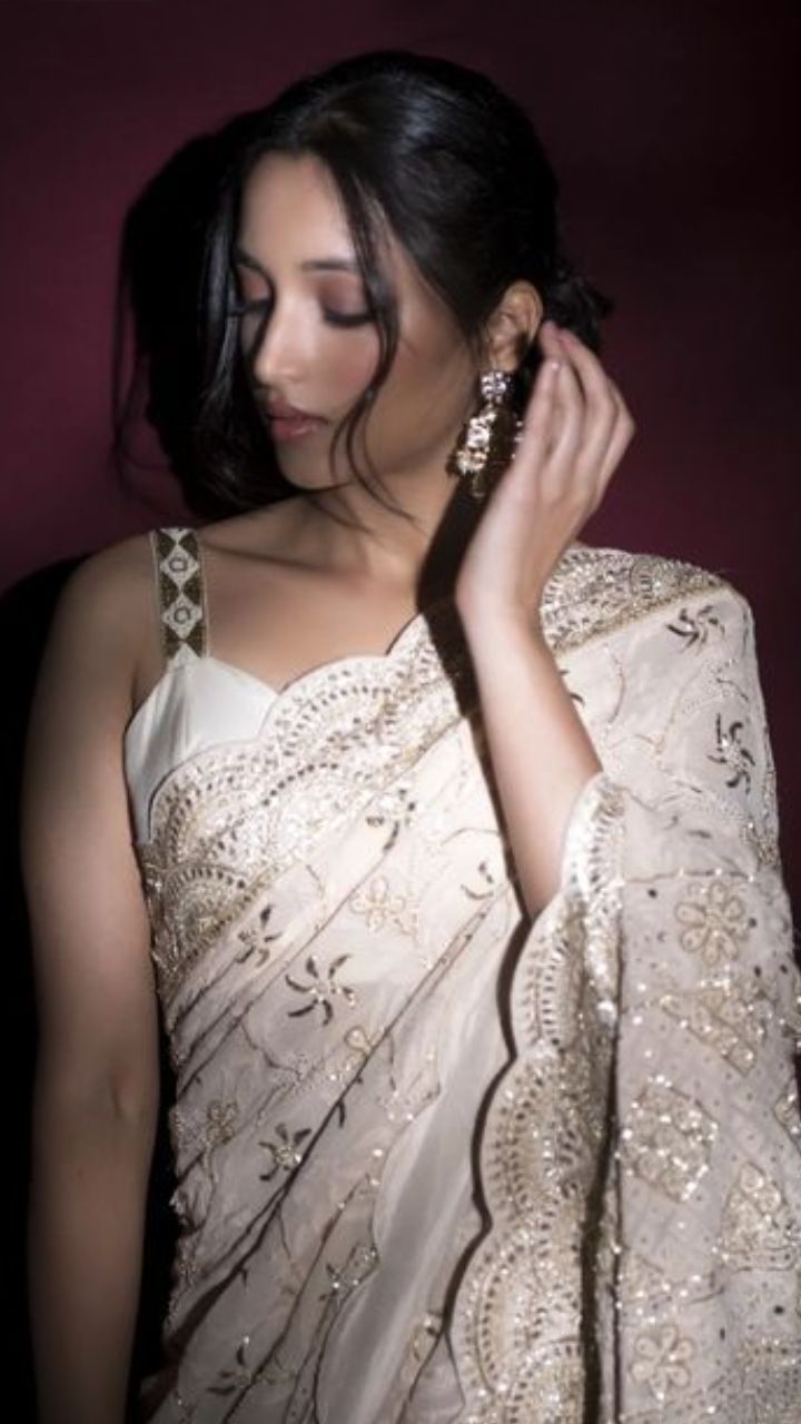 ऑफ व्हाइट साड़ी में श्रीनिधि शेट्टी बला की खूबसूरत लग रही हैं।