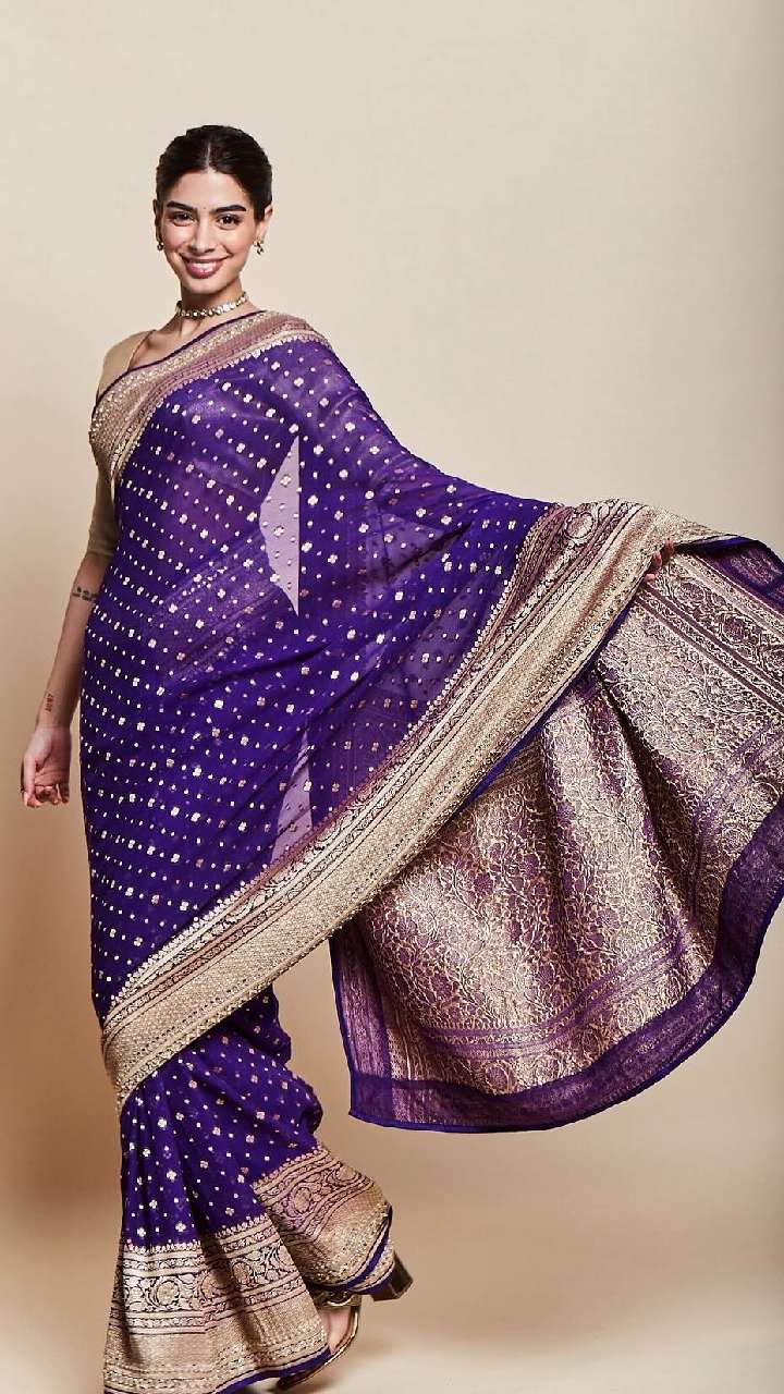 बनारसी साड़ी में खुशी कपूर का ये लुक काफी ज्यादा शानदार लग रहा है। आप भी इस तरह से साड़ी को ड्रेप कर सकती हैं।