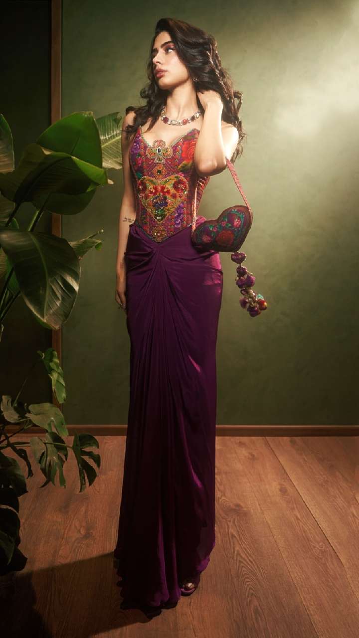लाइट एंब्रॉयडरी वाला यह कोर्सेट स्टाइल ड्रेस काफी ट्रेंड कर रहा है। आप इसे ग्लैमरस लुक के लिए बोल्ड मेकअप और कर्ली हेयर स्टाइल के साथ कैरी कर सकती हैं।