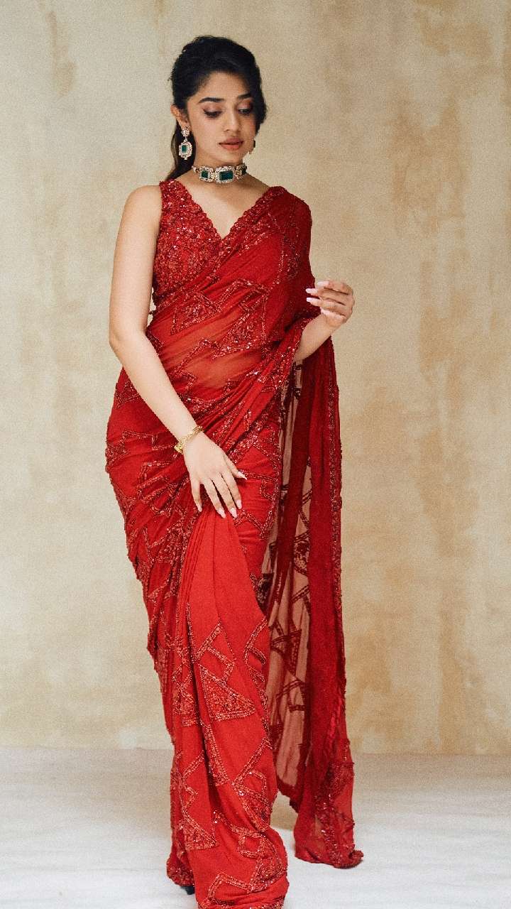 अगर आपकी पर्सनालिटी स्लिम है और अपने लुक्स को शानदार बनाना चाहती हैं तो आप कृति शेट्टी की तरह ही साड़ी-ब्लाउज स्टाइल कर सकती हैं।