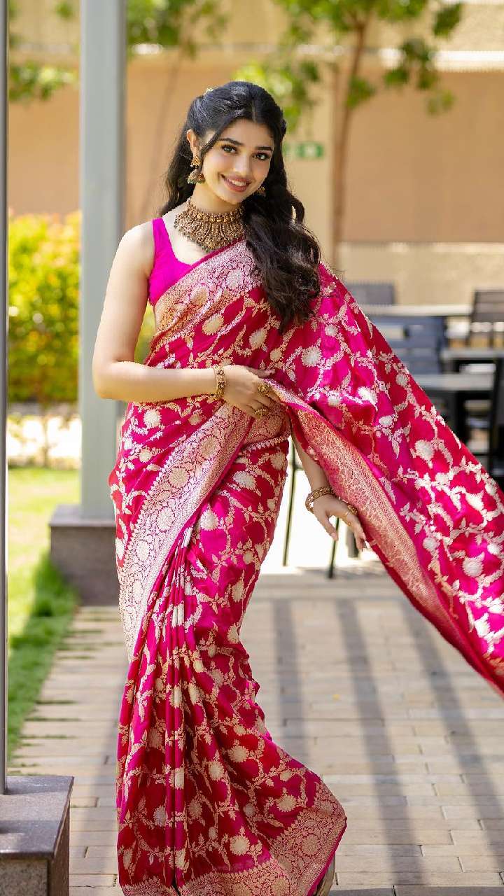 अगर आप अपने लुक को रॉयल बनाना चाहती हैं तो आप कृति शेट्टी की तरह ही सिल्क साड़ी पहन सकती हैं। सिल्क साड़ी के साथ एक्ट्रेस ने ब्रॉड स्ट्रैप ब्लाउज पेयर किया है।