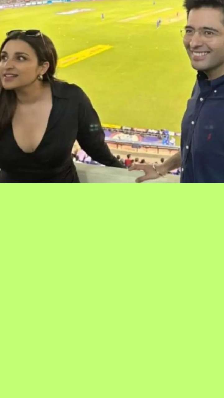 राघव और परिणीति मोहाली में आईपीएल मैच साथ में देखने पहुंचा था।