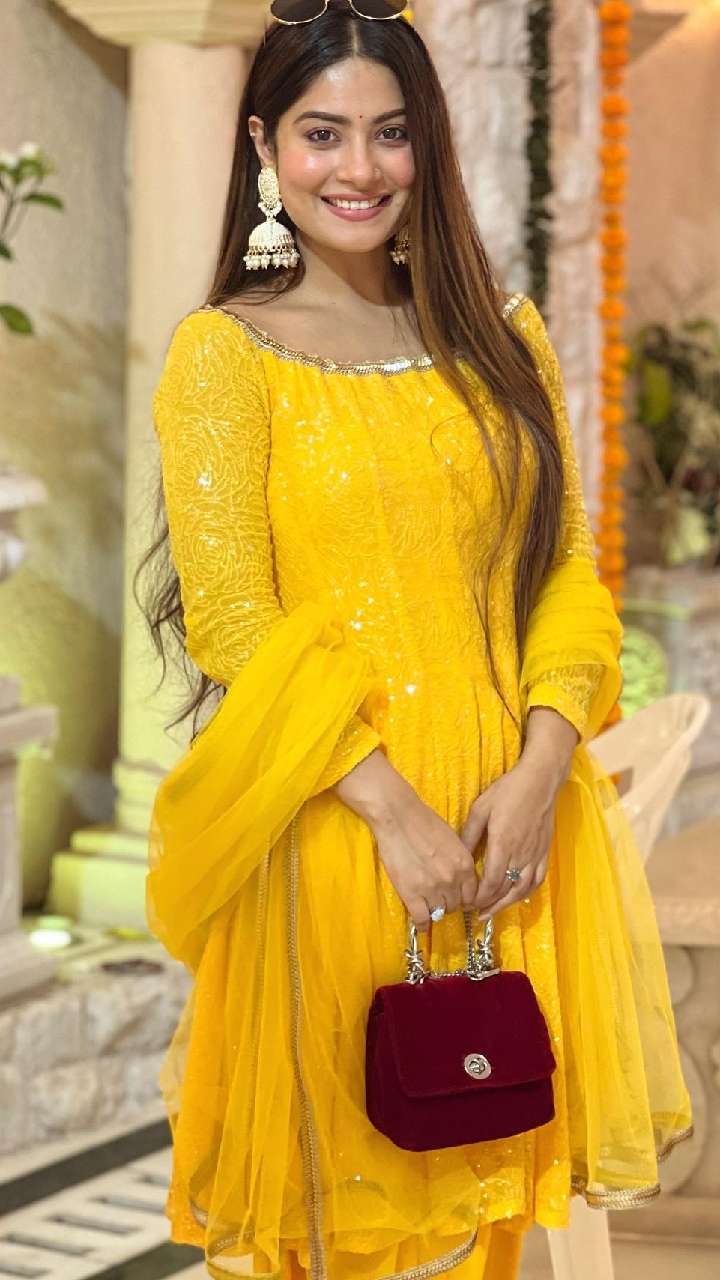 शादी के बाद आप इस तरह के येलो सूट को भी कैरी कर सकती हैं। कृष्णा मुखर्जी का ये लुक काफी ज्यादा शानदार लग रहा है।