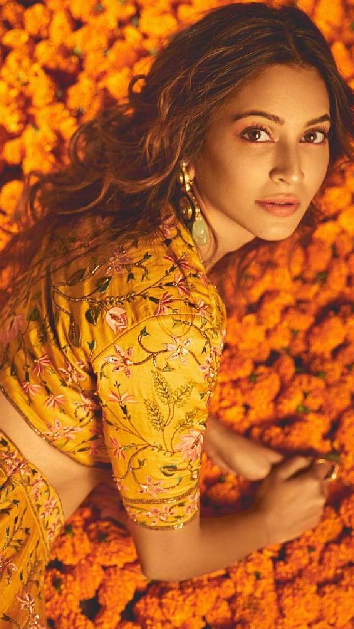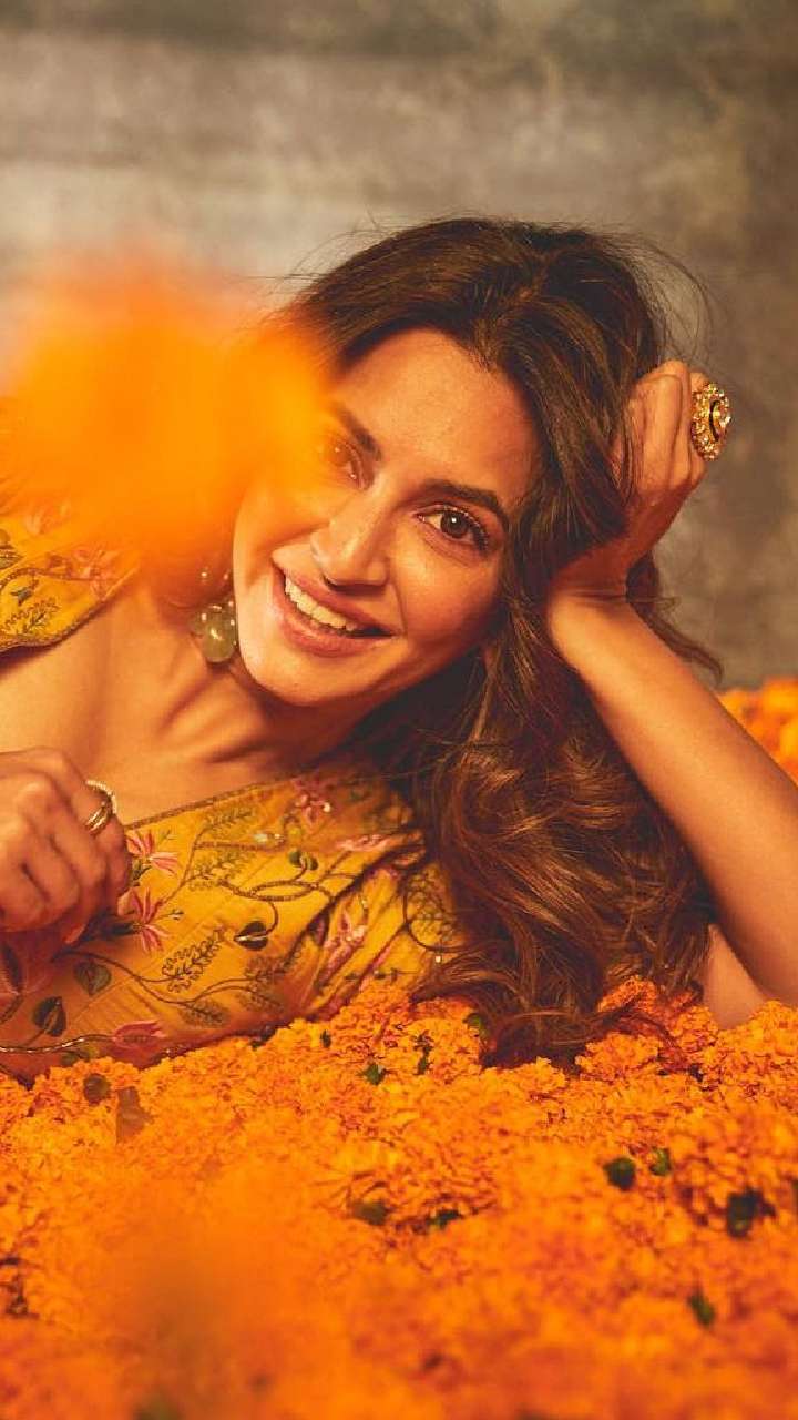 फोटोज में एक्ट्रेस फूलों के ऊपर लेटी हुई हैं और मस्ती भरे अंदाज में पोज दे रहीं हैं।
