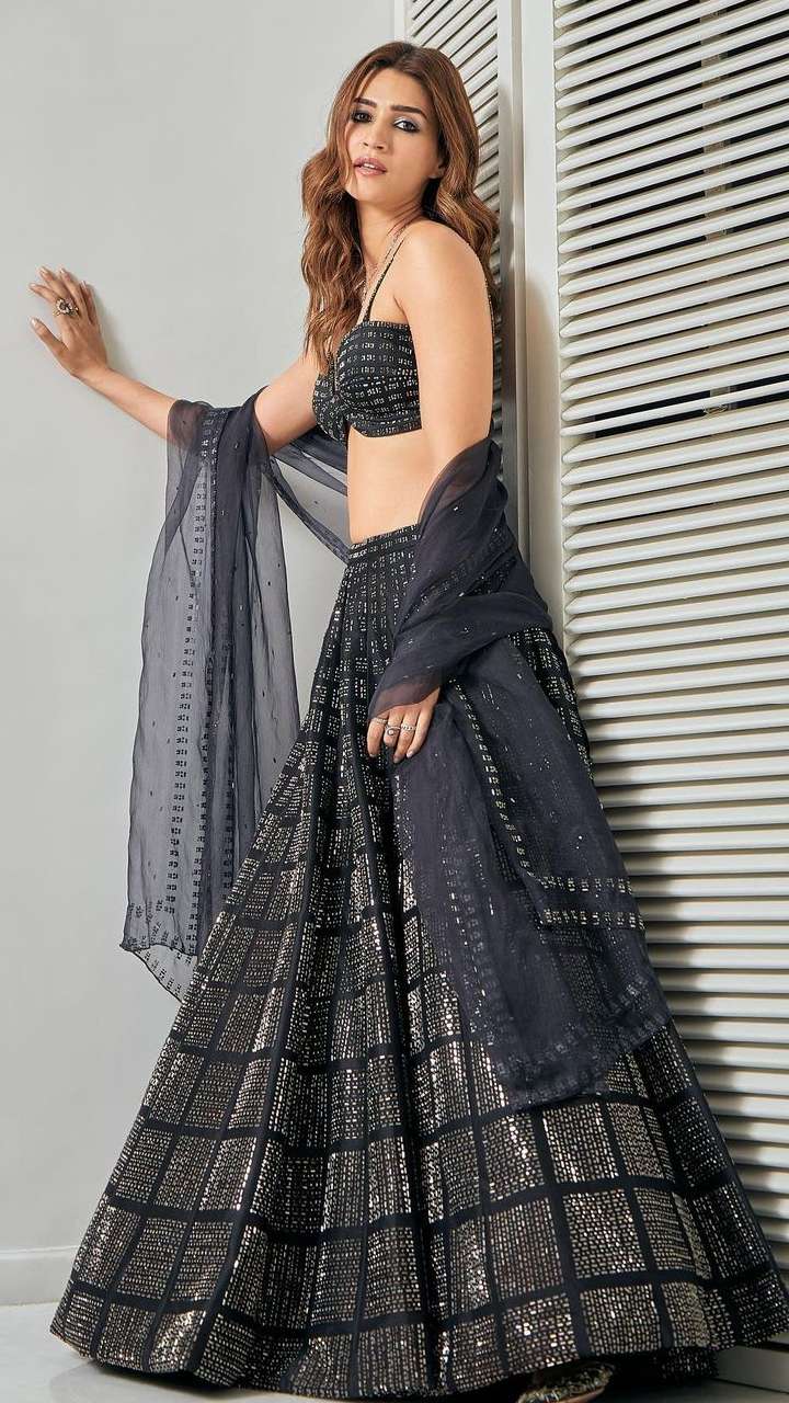 अगर आप ब्लैक कलर के दीवाने हैं तो कृति सेनन का ये लहंगा लुक भी आप जरूर ट्राई करें। इस लुक के साथ एक्ट्रेस ने स्मोकी आईज मेकअप किया है।