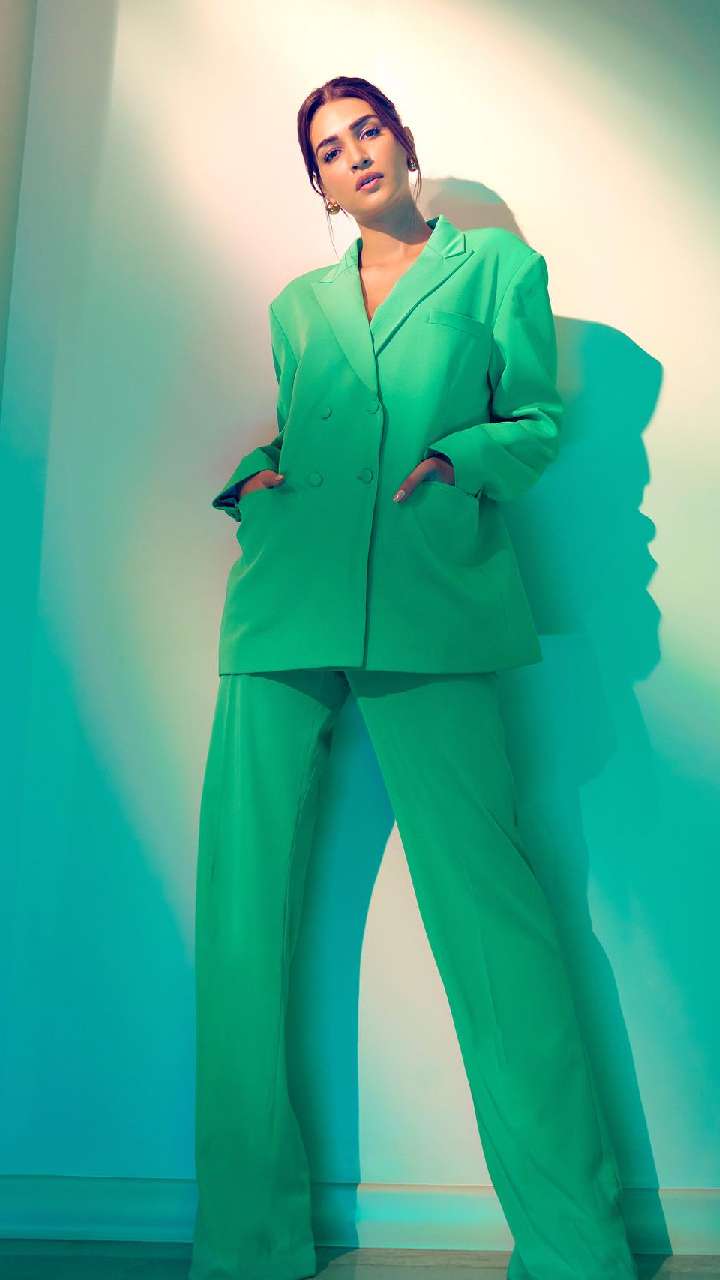 हाल ही में कृति सेनन का लेटेस्ट लुक सामने आया। ग्रीन कलर के को-ऑर्ड सेट में कृति बॉसी लुक दे रही हैं।