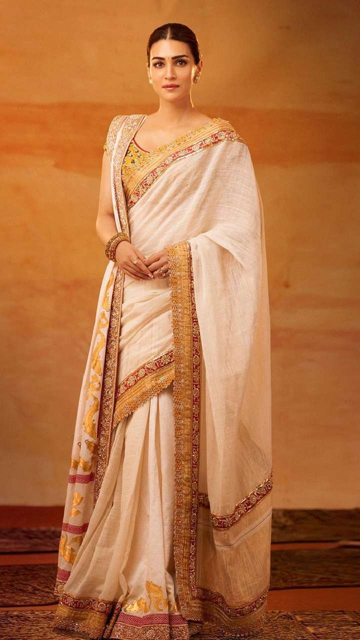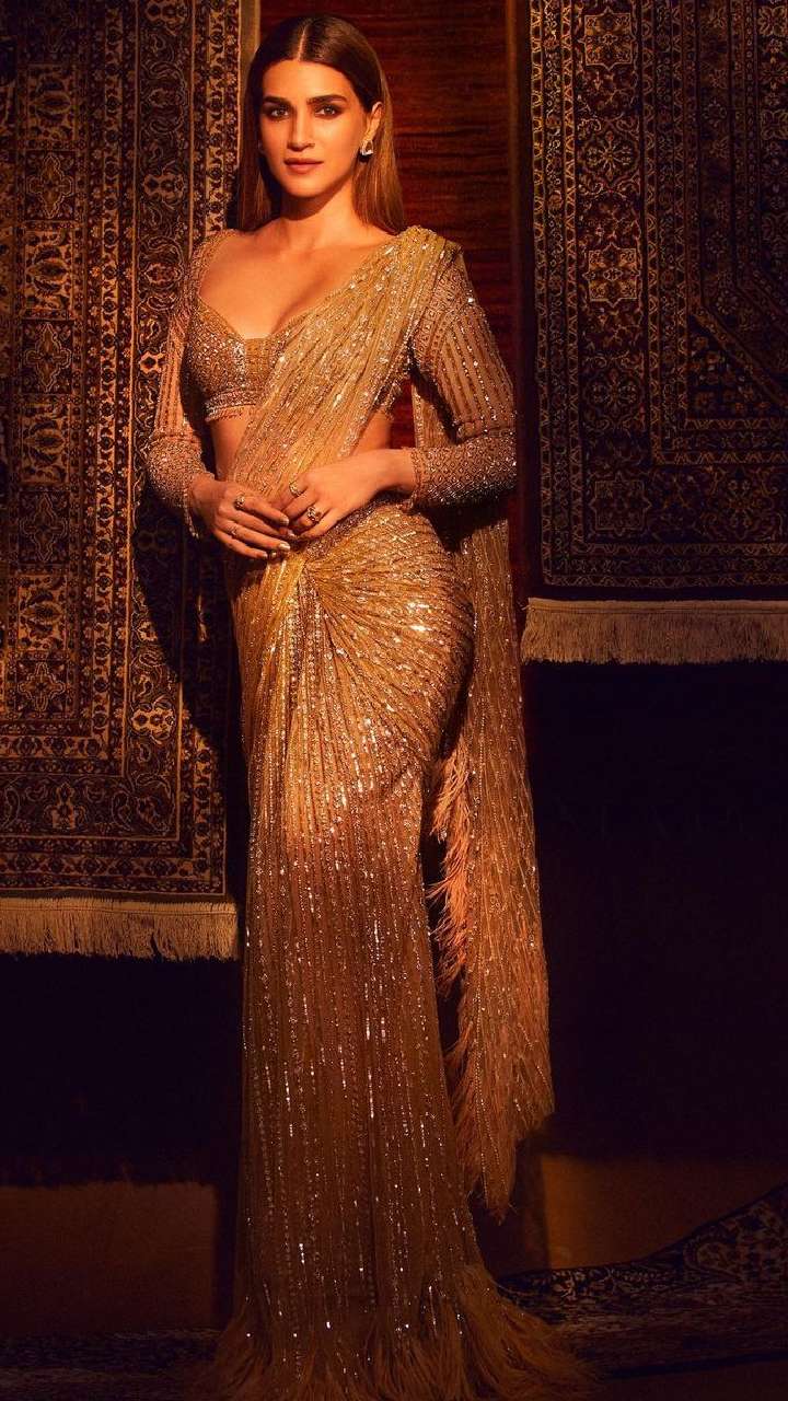 अपनी लांग हाइट और ब्यूटी के चलते कृति का हर साड़ी लुक शानदार होता है। आज हम आपको उनके डिफरेंट साड़ी लुक्स दिखाएंगे।