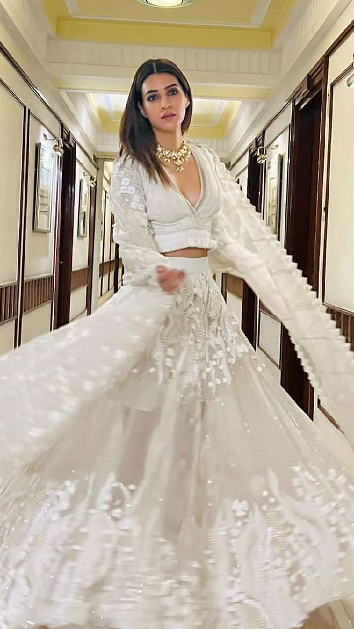 कृति सेनन के पास हर तरह के आउटफिट का शानदार कलेक्शन है। आज हम आपको उनके शानदार लहंगे लुक्स दिखाने जा रहे हैं।