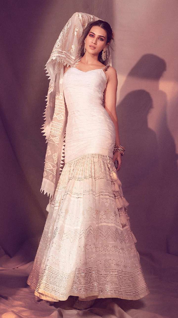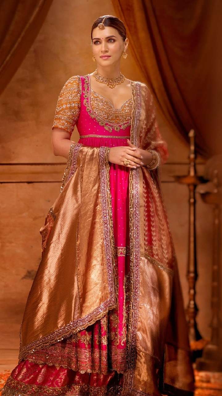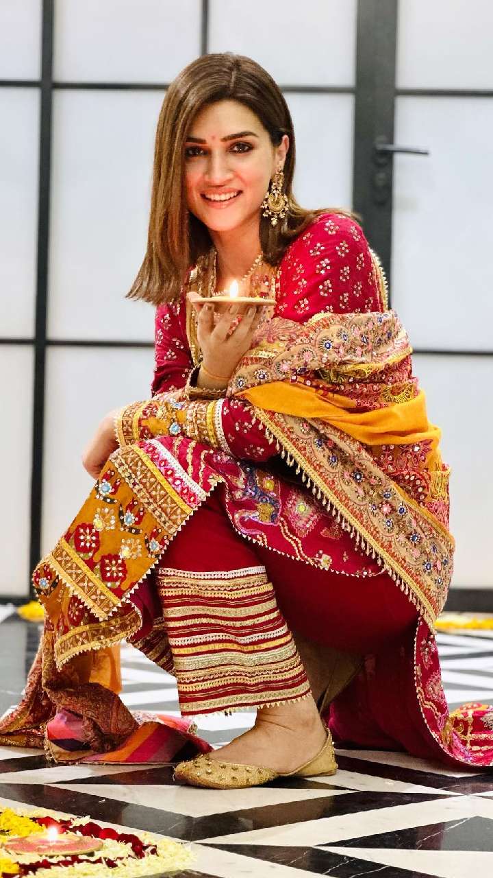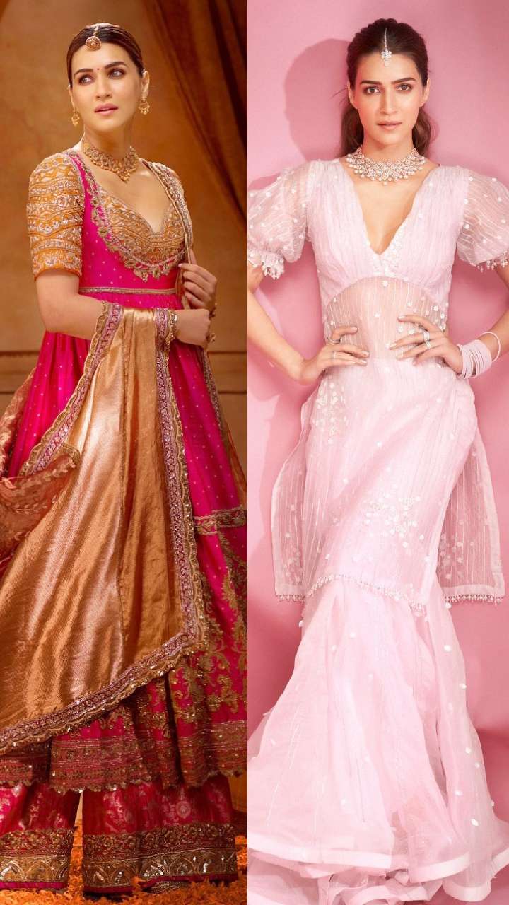 कृति सेनन वैसे तो हर ऑउटफिट में अट्रैक्टिव लगती हैं, लेकिन उनका एथनिक अटायर में अलग ही अंदाज देखने को मिलता है। डीवा देसी लुक्स में अप्सरा लगती हैं।