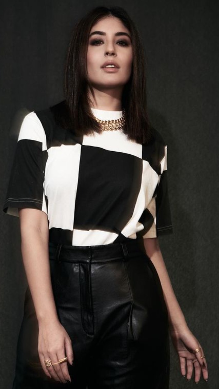 चेक टी-शर्ट और पेंट के साथ एक्ट्रेस का ये लुक काफी क्लासी है।
