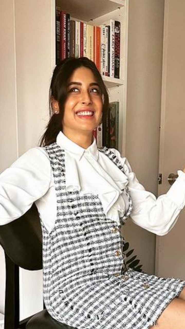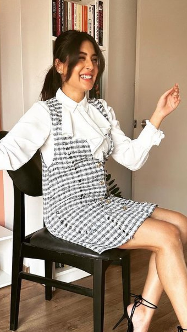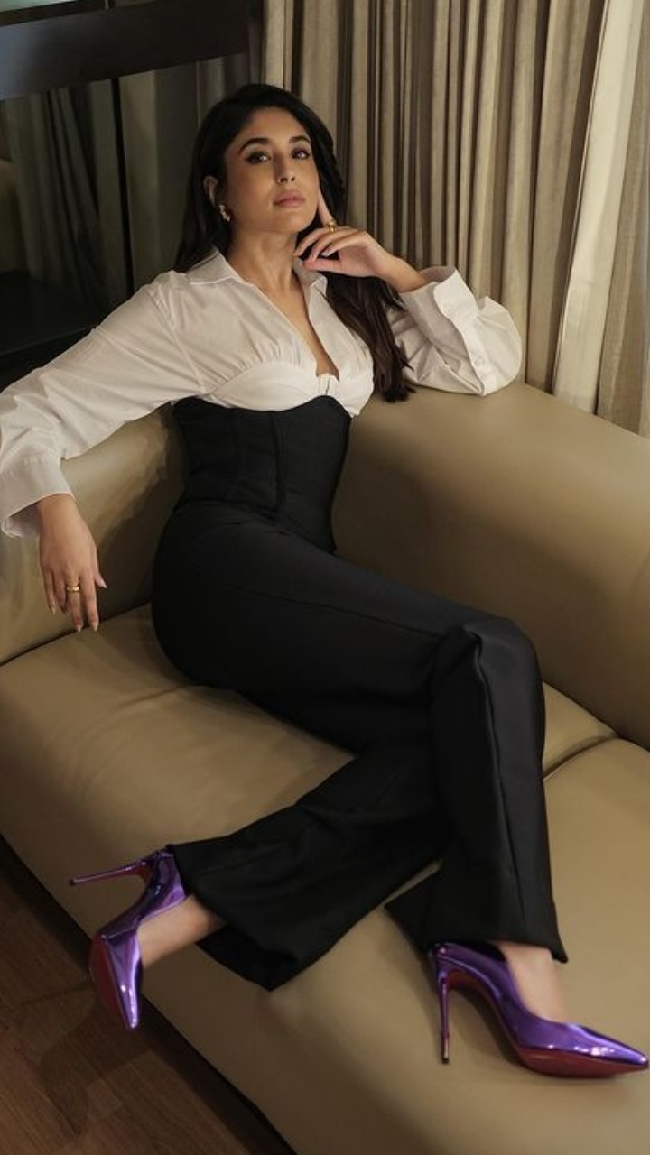 कृतिका कामरा का यह लुक बिलकुल वेंटेज वाइब दे रहा हैं। अगर आपको भी ब्लैक एंड व्हाइट का कॉम्बिनेशन अच्छा लगता हैं तो इस लुक को आप ट्राई कर सकते हैं।