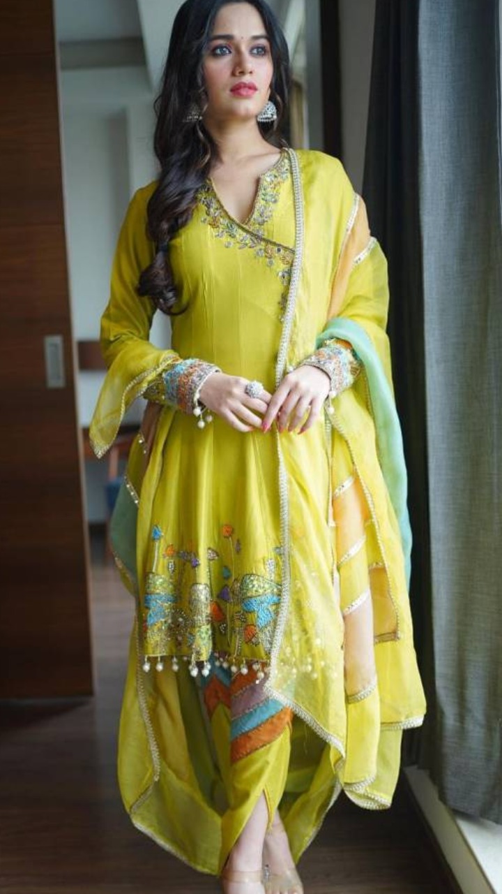 ग्रीन कलर के प्रिंटेड और एंब्रॉयडर्ड सूट में जन्नत के इस लुक पर फैंस अपना दिल हार रहे हैं।