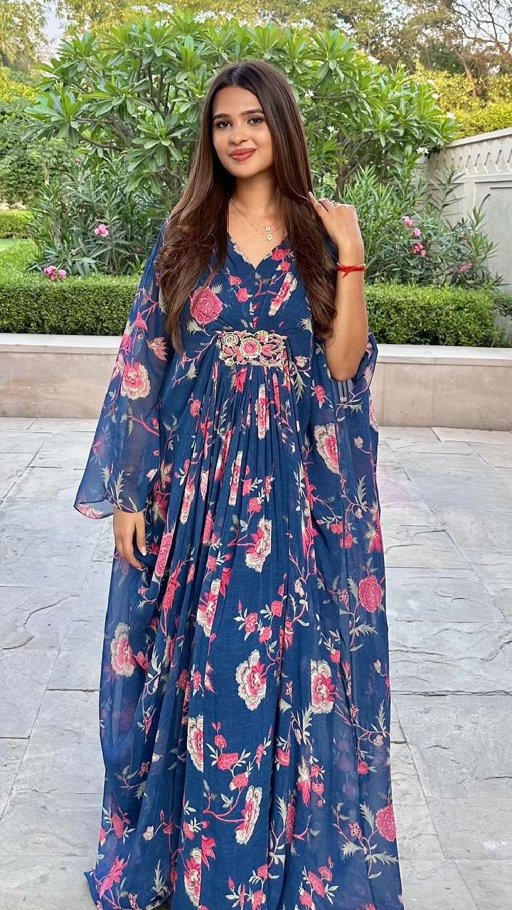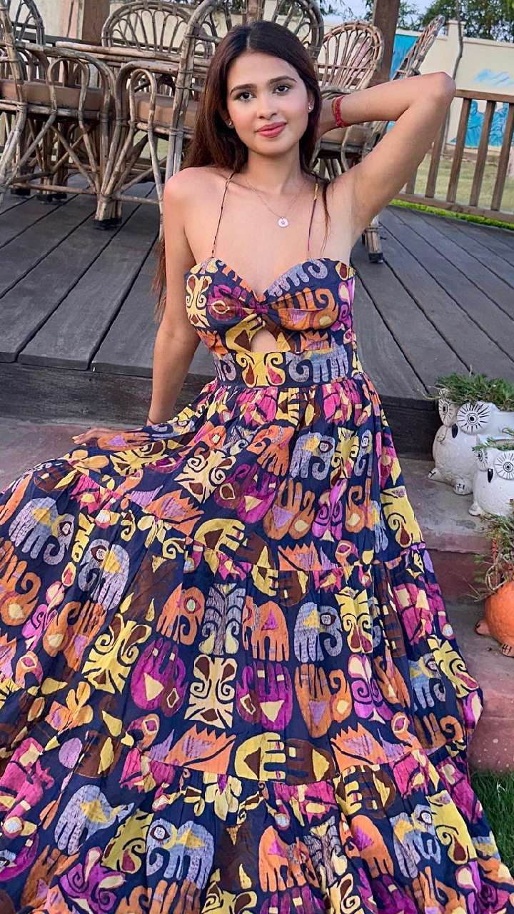 अगर आप सिंपल ड्रेस पहनकर बोर हो गई हैं, तो अग्रता के इस लुक को रीक्रिएट करें। उन्होंने प्रिंटेड लॉन्ग ड्रेस पहना है, जिसमें वह परी जैसी लग रही हैं।