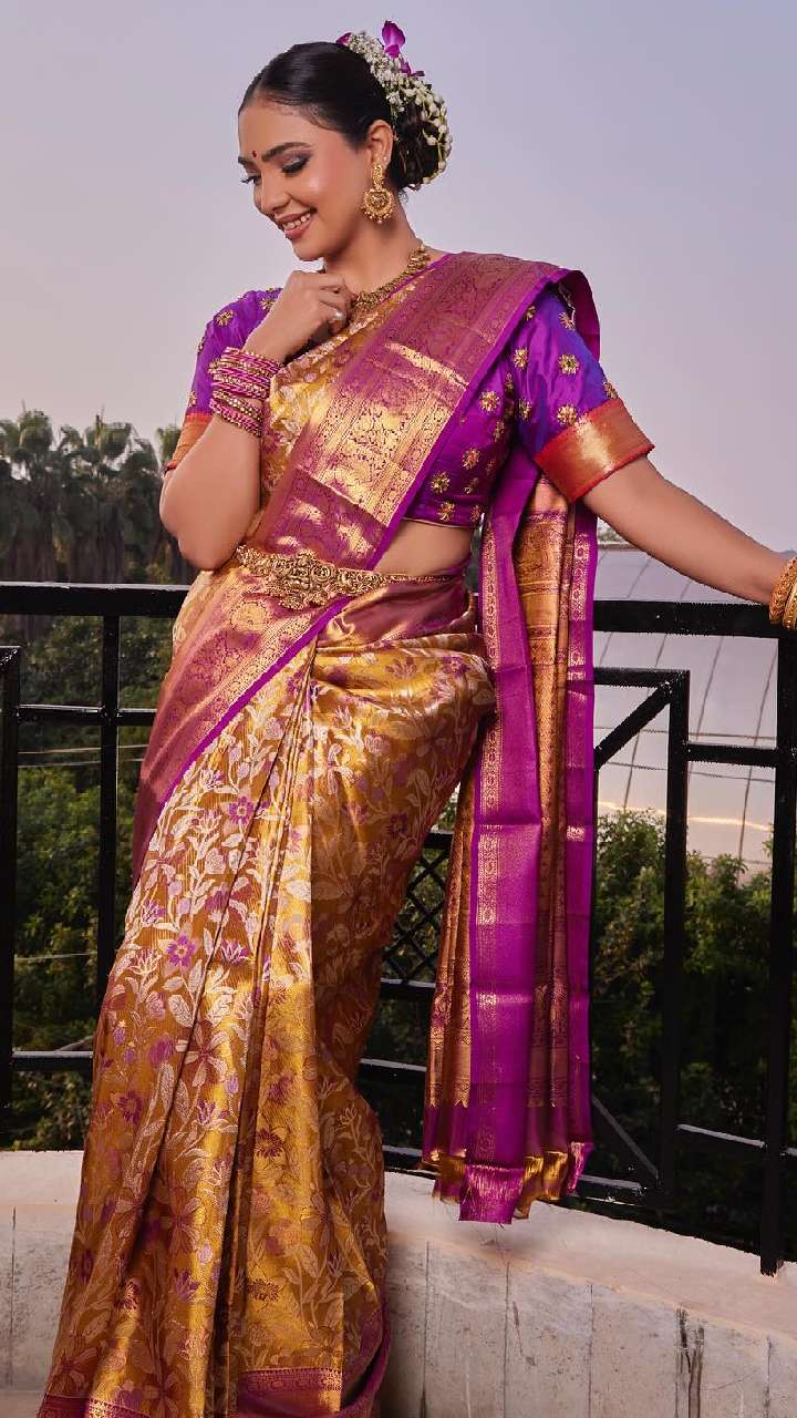 ससुराल में रॉयल लुक कैरी करने के लिए कांजीवरम साड़ी चुनें। इसके साथ गोल्ड ज्वेलरी पहनकर बला की खूबसूरत लगेंगी।