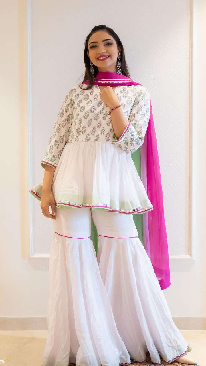 इस फेस्टिव सीजन पूजा बनर्जी के शरारा सूट लुक को कॉपी करें। यह आपके लुक में चार-चांद लगा देगा।