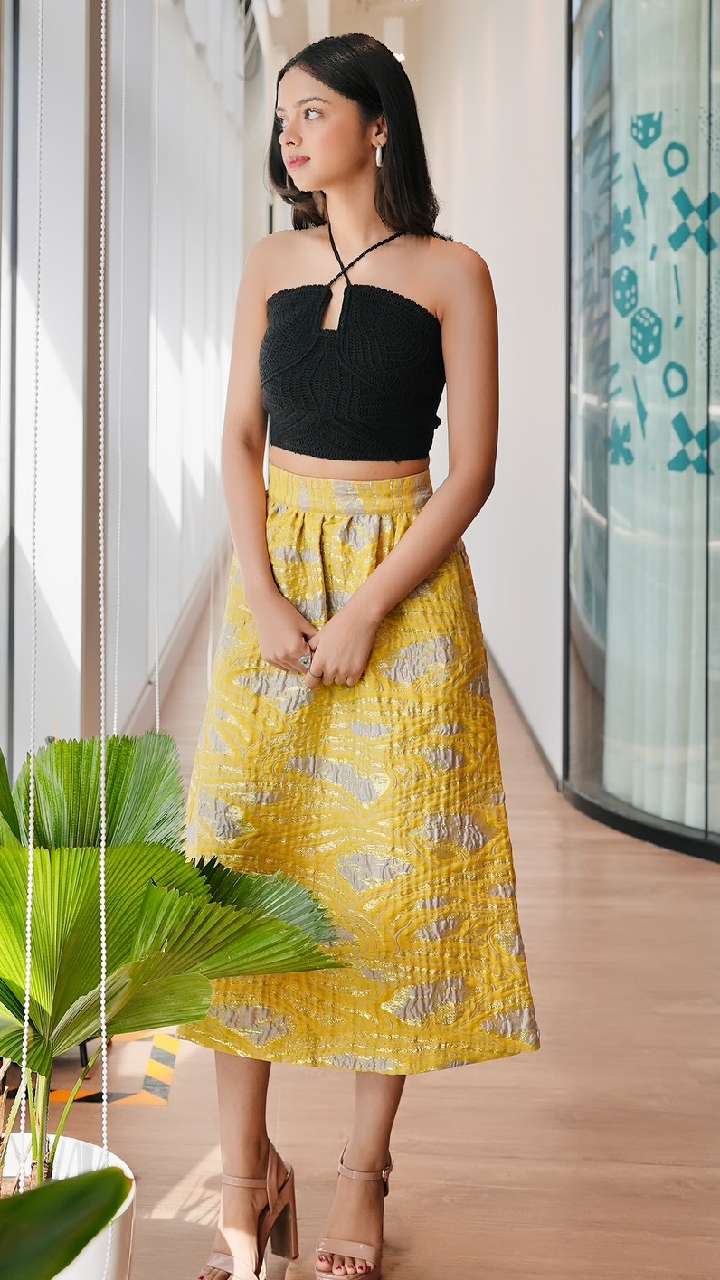 Nitanshi की यह ब्लैक ड्रेस देखने में बेहद अट्रैक्टिव और स्टाइलिश लग रहा है। यंग गर्ल्स कर्ली हेयर स्टाइल के साथ एक्ट्रेस की ड्रेस को बर्थडे पार्टी में पहन सकती हैं।
