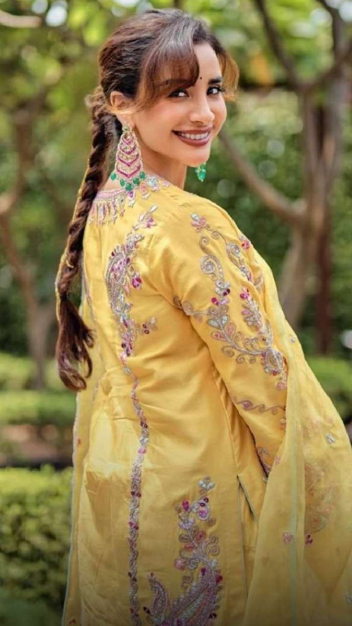 यंग गर्ल्स पंजाबी सूट में ग्लैमरस दिखने के लिए एक्ट्रेस के ब्रेड हेयर स्टाइल को हेयर एक्सेसरीज के साथ स्टाइल कर सकती हैं।