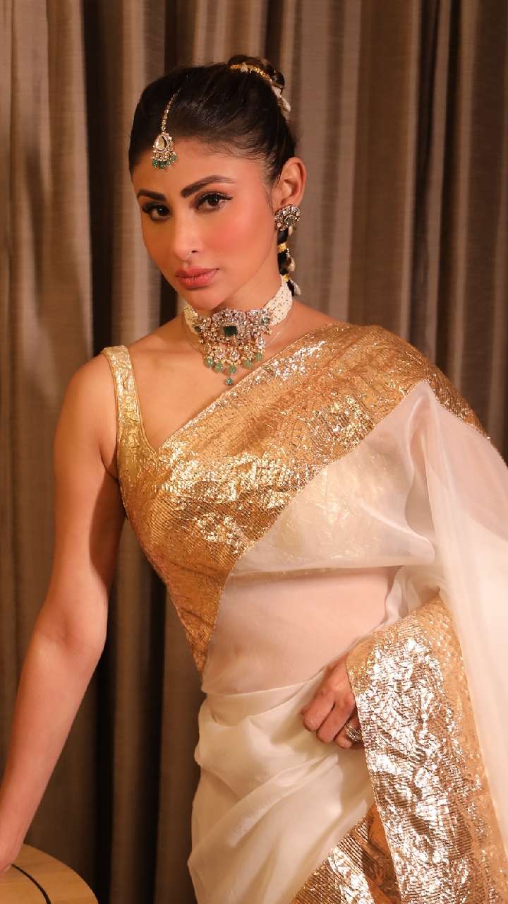 एक्ट्रेस की तरह सिल्वर साड़ी के साथ सिल्वर मांग टीका जरूर ट्राई करें। यह आपकी खूबसूरती को बढ़ाने में मदद करेगी।