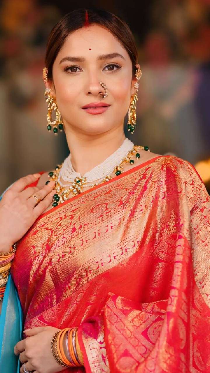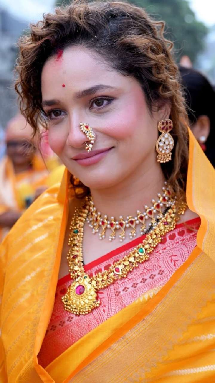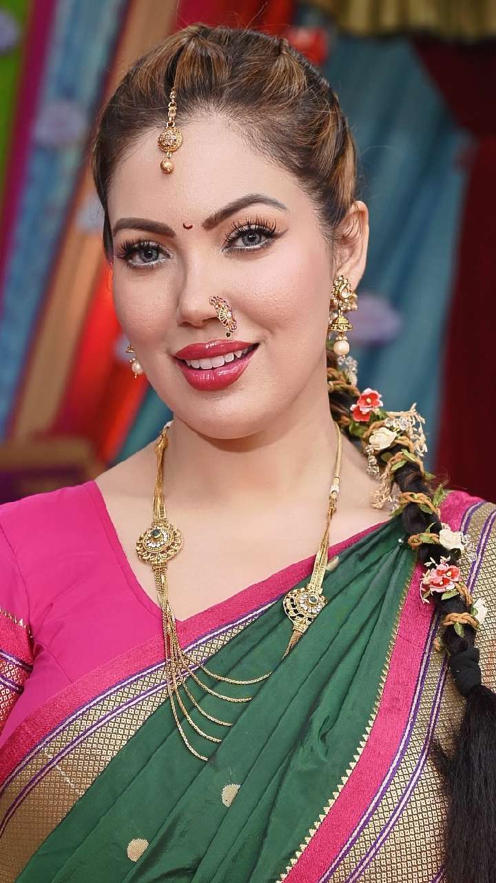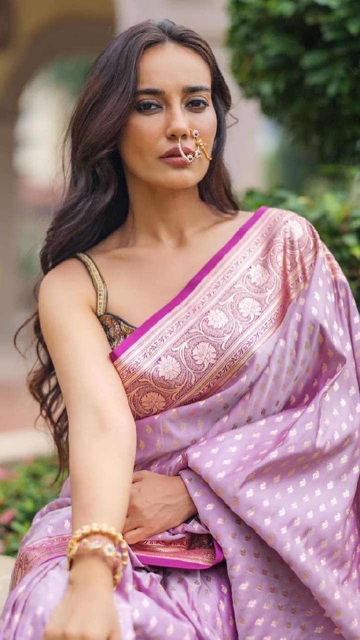 एक्ट्रेस ने साड़ी के साथ फ्लावर रिंग नोज पिन पहनी है, जिसमें वह अप्सरा जैसी लग रही हैं। इस तरह की नोज पिन आप भी ट्राई करें।
