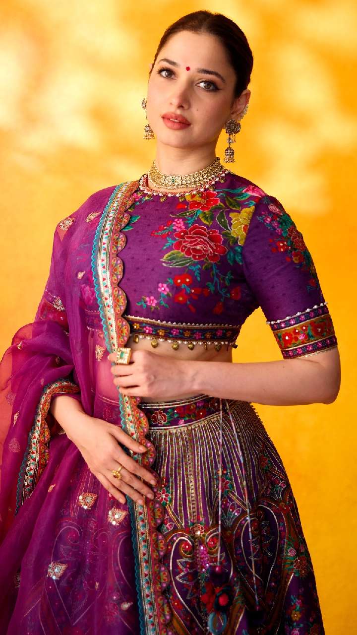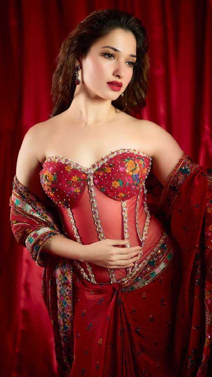 एक्ट्रेस की यह प्लम लिपस्टिक शेड गोरी रंगत वाली लड़कियों के चेहरे को चांद जैसा नुर देंगी। आप आउटफिट को अट्रैक्टिव बनाने के लिए Tamannaah के शेड को ट्राई कर सकती हैं।