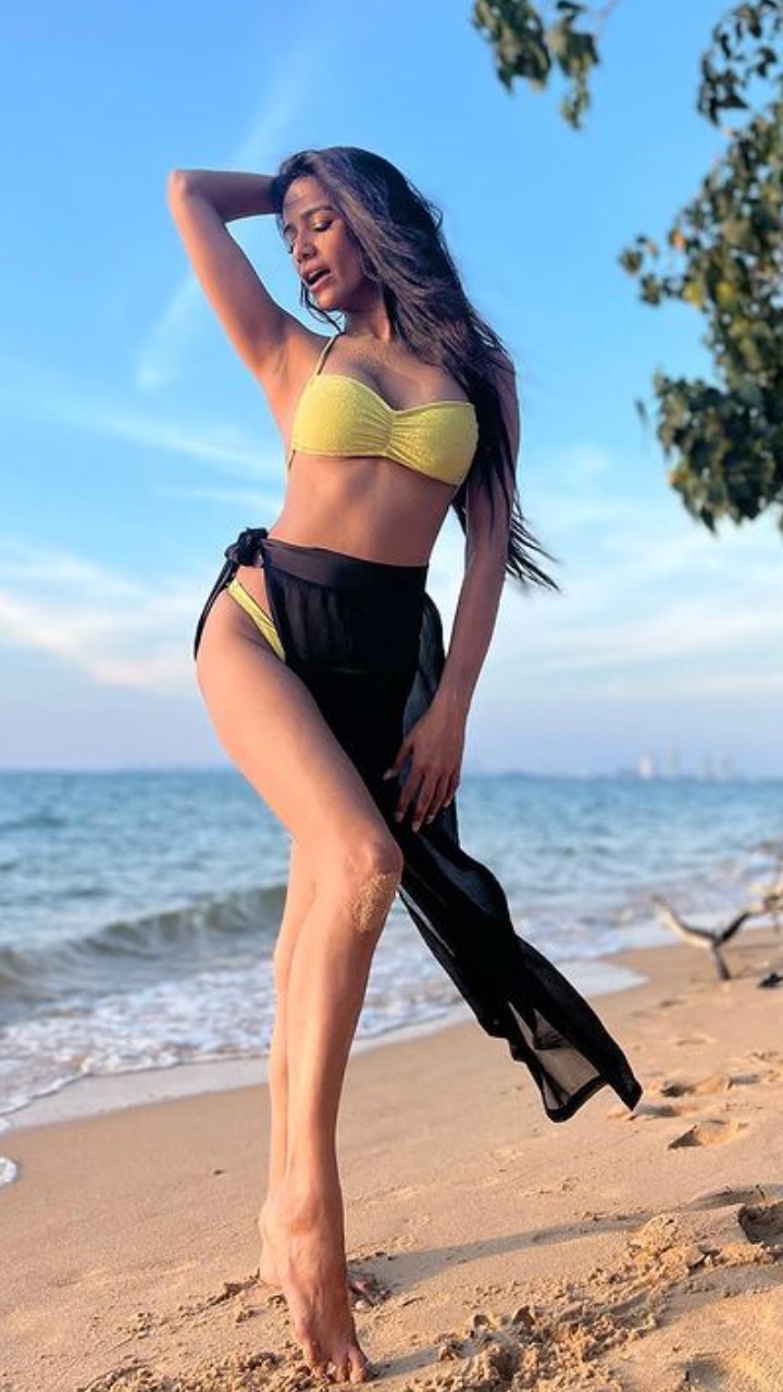 पूनम बैकलेस लुक में टोंड फिगर फ्लॉन्ट करती हुई इंटरनेट की गर्मी बढ़ा रही हैं।