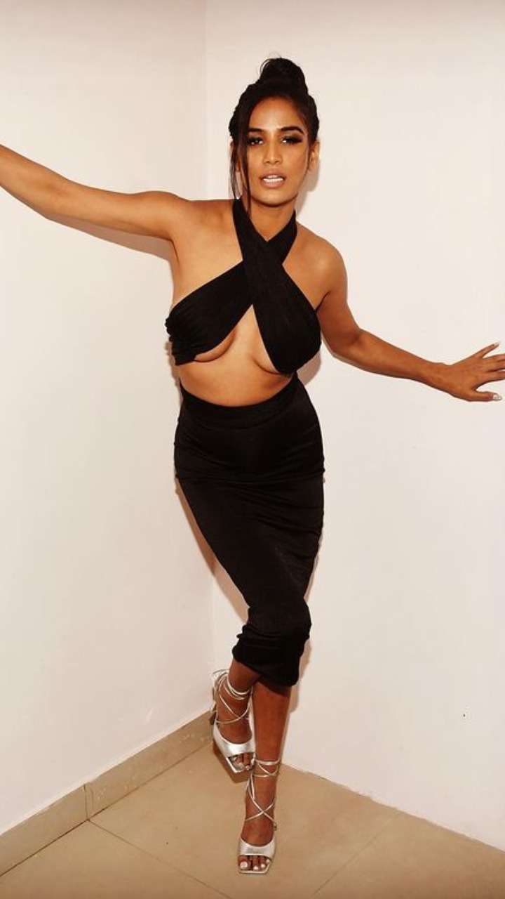 पूनम पांडे ब्लैक रिवलींग ड्रेस में बोल्डनेस का तड़का लगाती नजर आ रही हैं।