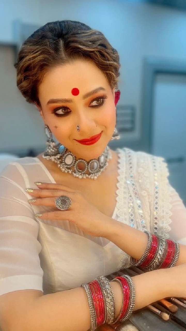 अनुपमा एक्ट्रेस ने व्हाइट साड़ी के साथ मिनिमल मेकअप किया हुआ हैं। ऑक्सिडाइज्ड ज्वेलरी पहने और हाथों में बैंगल्स डाले डीवा बेहद ग्लैमरस लग रही हैं।