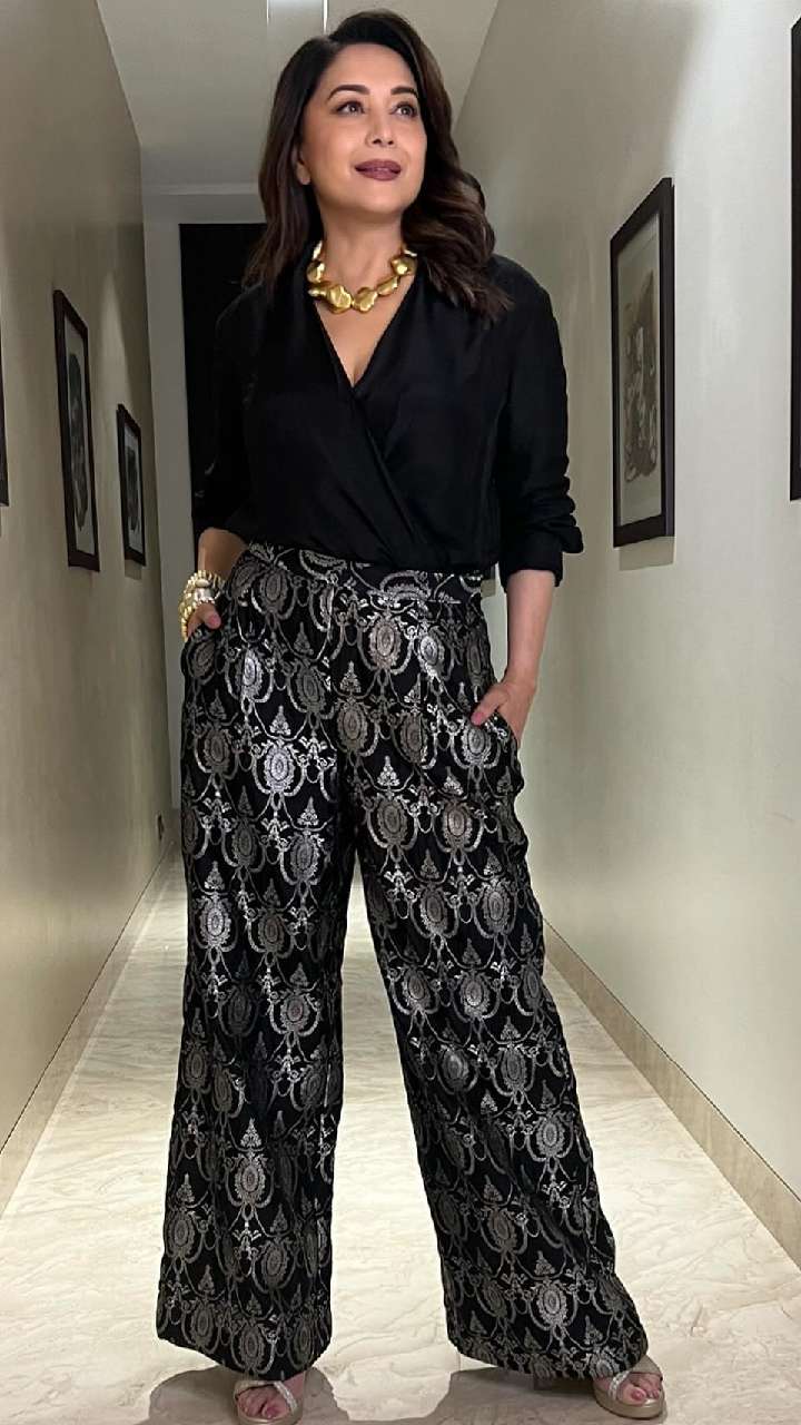 माधुरी का कॉटन पेंट विद प्लेन क्रॉप टॉप लुक काफी स्टाइलिश लग रहा है। समर सीजन में आप इसे ऑफिस में भी ट्राई कर सकती हैं।