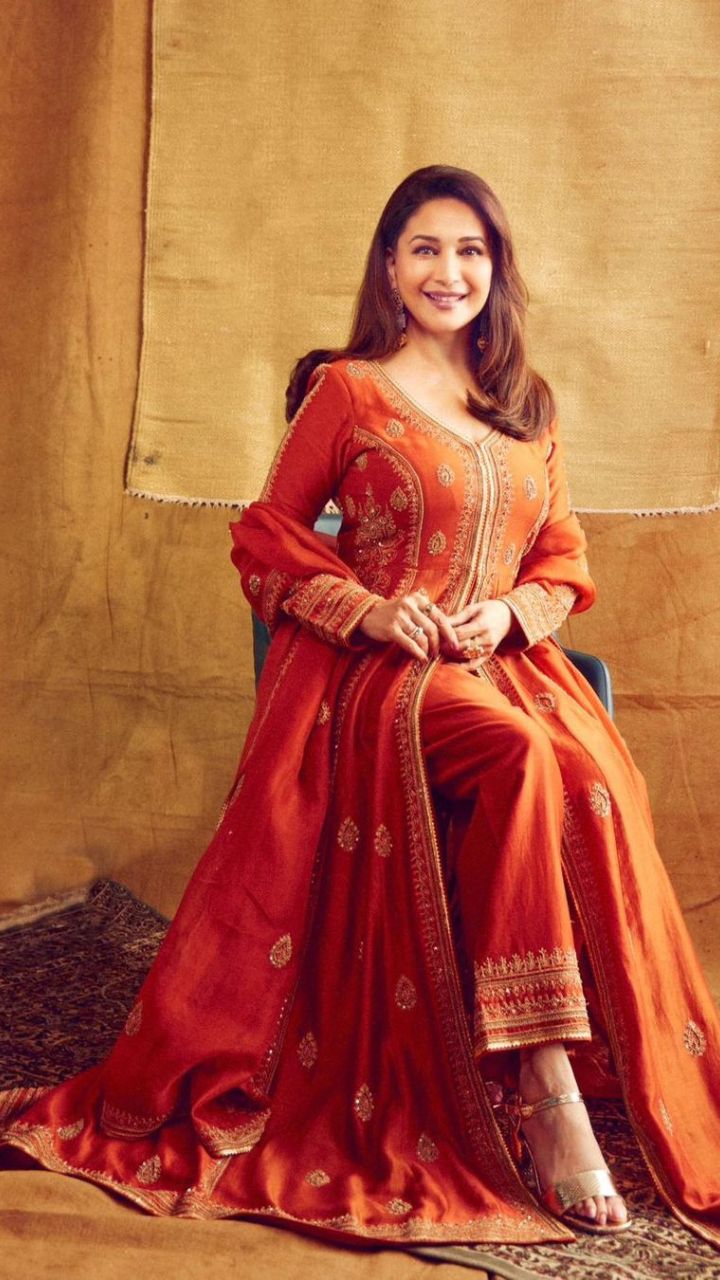 माधुरी दीक्षित एथनिक लुक में बहुत सुंदर लगती हैं। इन फोटोज में भी वो हुस्न की मलिका लग रही हैं।