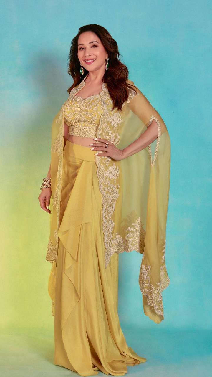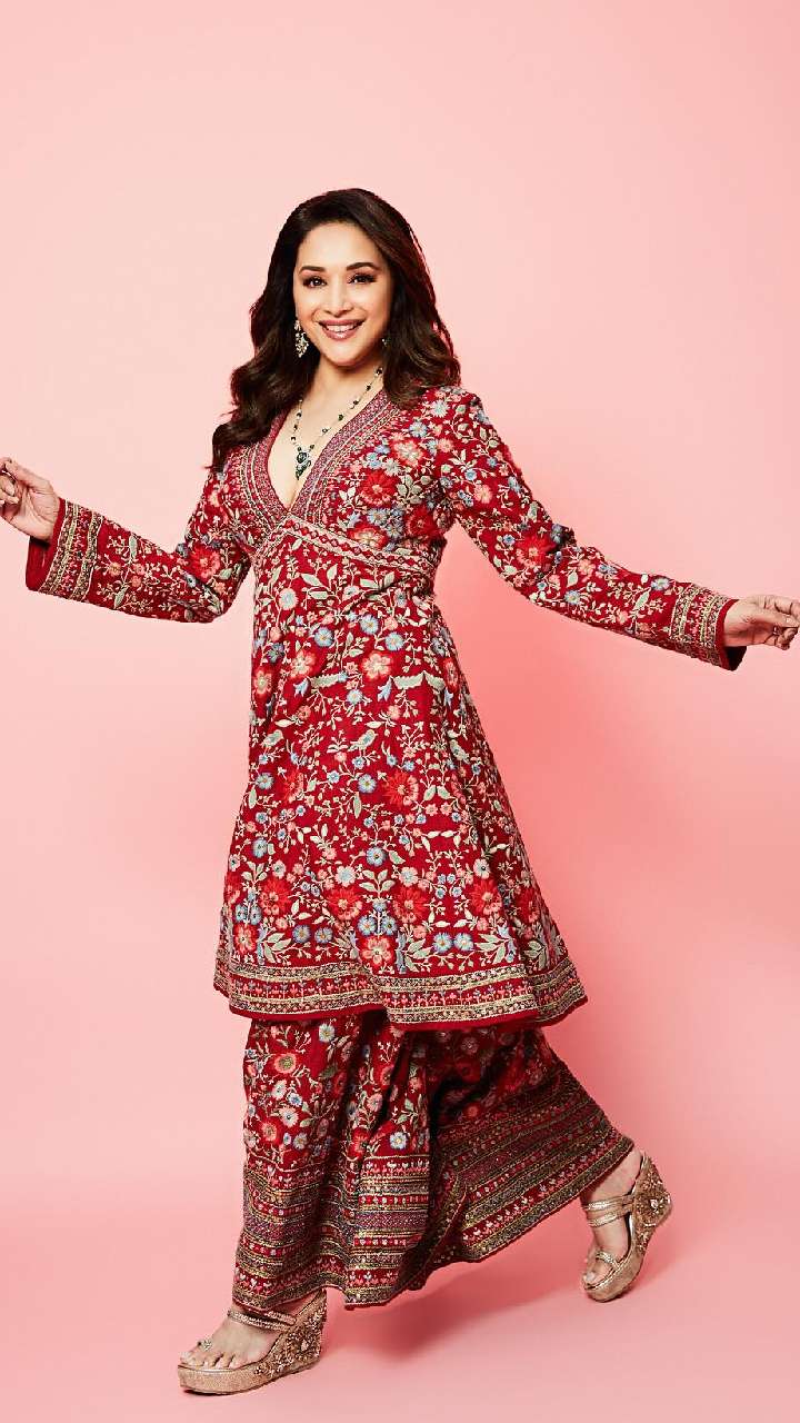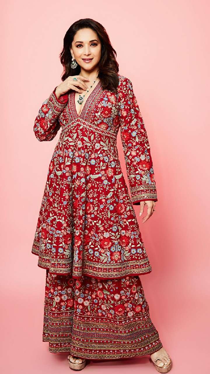 अगर आप अपने इंडियन लुक को वेस्टर्न तड़का देना चाहती हैं तो आप माधुरी दीक्षित के इस इंडो वेस्टर्न लुक को कैरी करें।