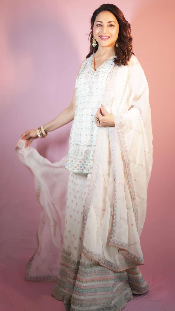 माधुरी दीक्षित का ये व्हाइट रॉयल सूट लुक आप भी कैरी कर सकती हैं। आप भी एक्ट्रेस के इस आउटफिट में रॉयल दिखेंगी।