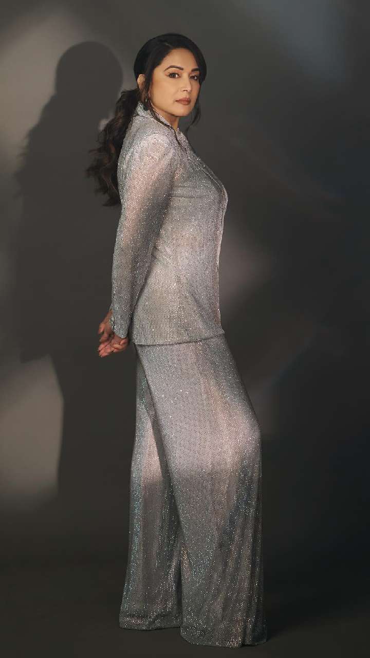 अगर आप किसी पार्टी में जा रहीं हैं तो आप माधुरी दीक्षित के इस शिमरी लुक को कैरी कर सकती हैं।