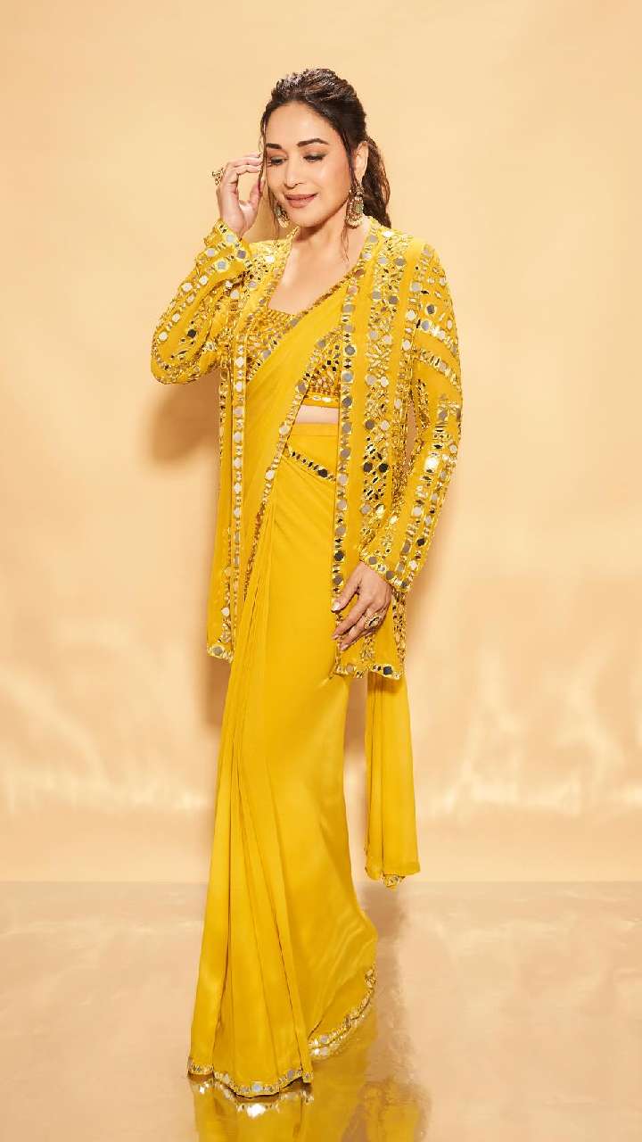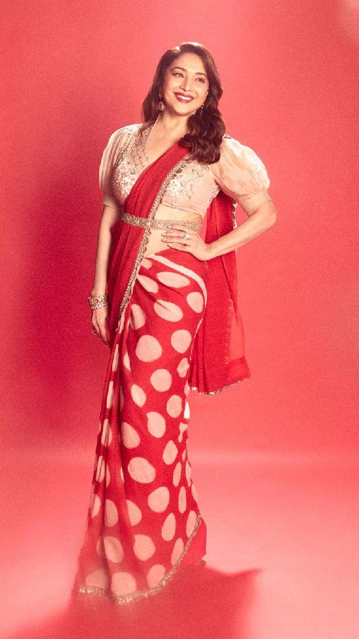 माधुरी दीक्षित का फैशन सेंस काफी शानदार है और फिलहाल इंडो वेस्टर्न साड़ियां काफी ट्रेंड में चल रहीं हैं।