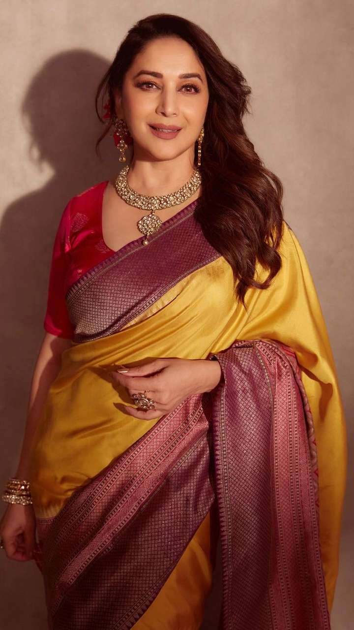 साड़ियों और इंडियन लुक की बेहद शौकीन माधुरी का आज हम आपको लेटेस्ट ट्रेंडी साड़ी कलेक्शन दिखाने जा रहे हैं।