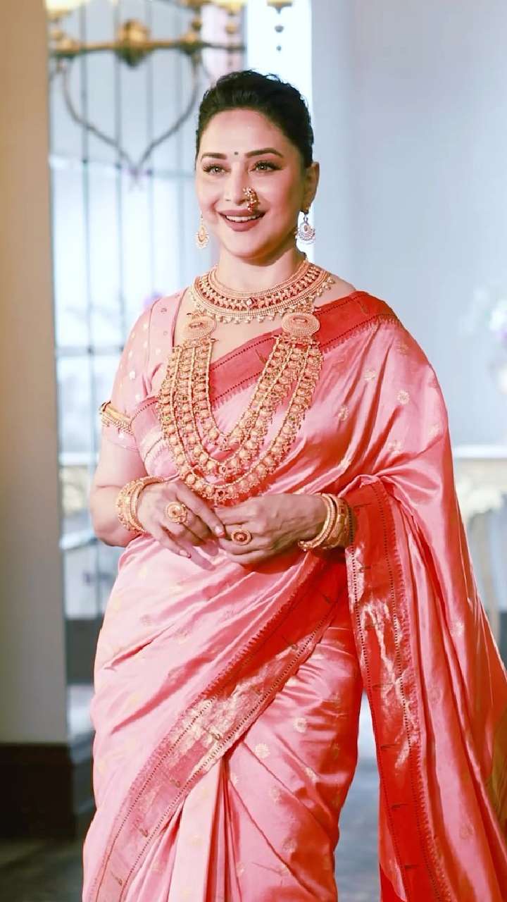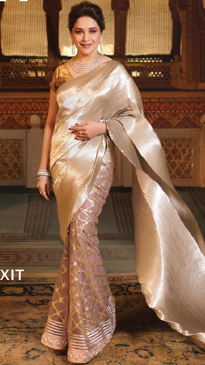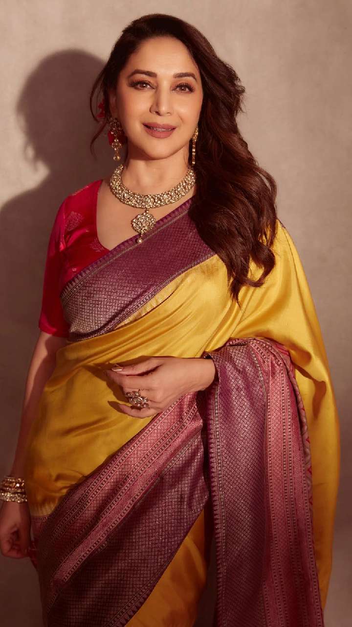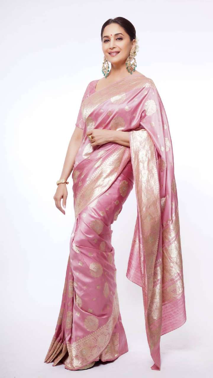 एक्ट्रेस साड़ी पहनने की बेहद शौकीन हैं। ऐसे में उनके वार्डरोब में सभी तरह की साड़ियों का शानदार कलेक्शन है। ऐसे में आज हम आपको माधुरी का शानदार सिल्क साड़ी कलेक्शन दिखाने जा रहे हैं।