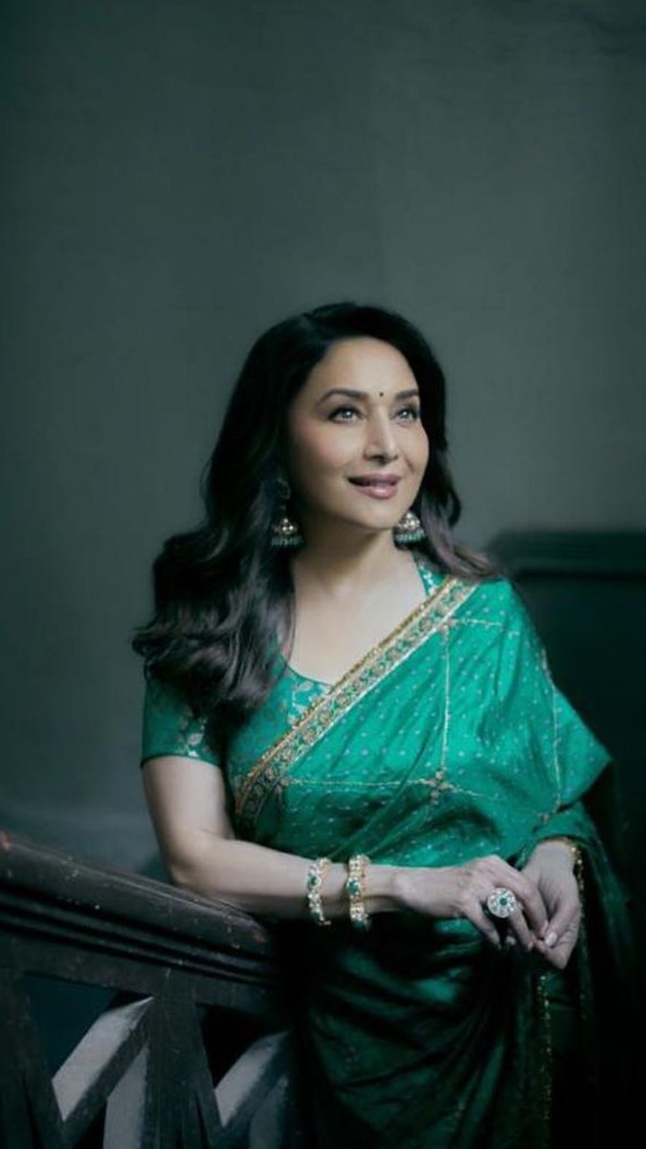 माधुरी दीक्षित का यह शिमरी लुक आप भी फॉलो कर सकते हैं। शिमरी साड़ी के साथ एक्ट्रेस ने शिमरी मेकअप भी किया है।
