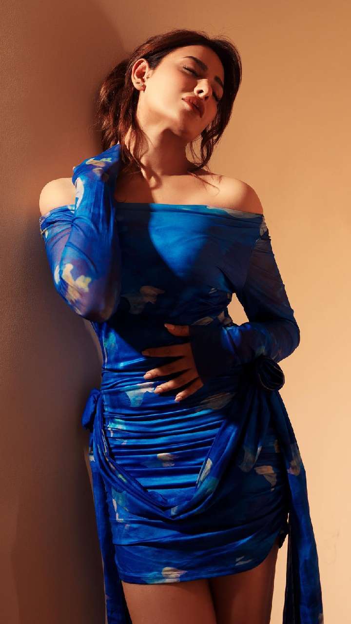 अपने पार्टनर के साथ डेट पर जा रही हैं, तो एक्ट्रेस के इस सेसी लुक को कॉपी कर सकती हैं। उन्होंने ब्लू कलर की शॉर्ट ड्रेस पहनी है। इस तरह की ड्रेस आपके लुक को हॉट बना देगी।