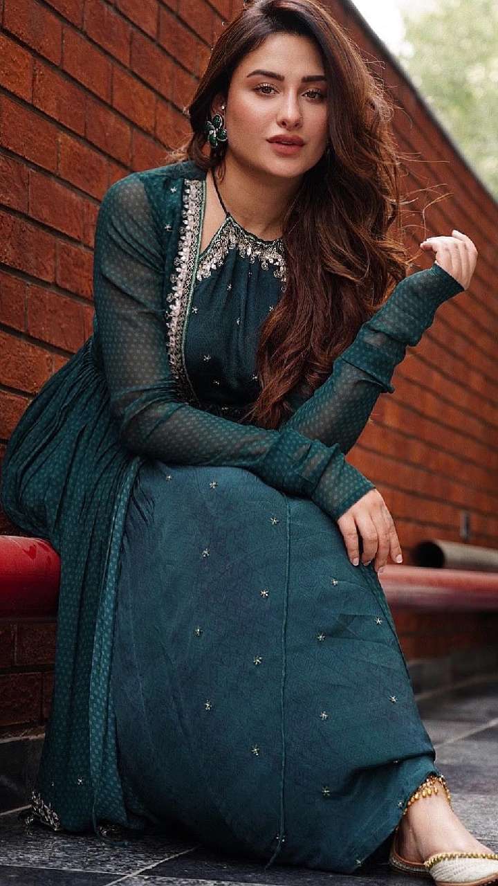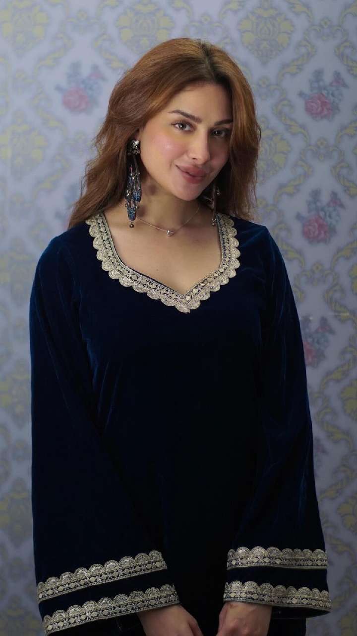 अपने सूट लुक को स्टाइलिश बनाने के लिए आप सूट के साथ श्रग स्टाइल कर सकती हैं। माहिरा शर्मा का ये लुक शानदार लग रहा है।