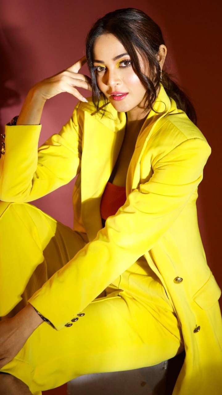 अभिनेत्री इस हल्के गुलाबी रंग वाले हाई स्लिट गाउन में बेहद सेक्सी दिख रही हैं।