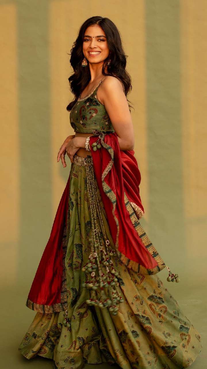 मेहंदी की रस्म के लिए आप मालविका मोहनन का ये ग्रीन लहंगा लुक कैरी कर सकती हैं। एक्ट्रेस का ये लुक शानदार है।