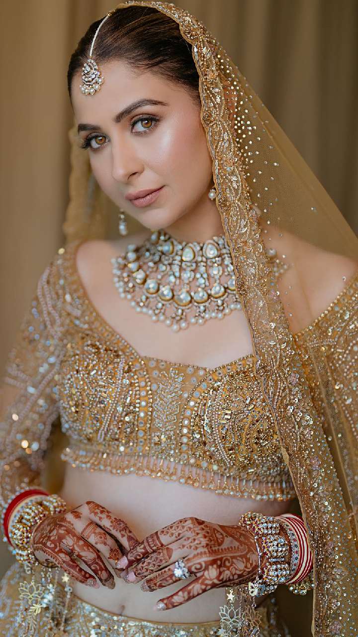 मालविका का ब्रॉड नेक चोली डिजाइन आपके वेडिंग लुक में जान डाल देगा। एक्ट्रेस इस लाइट ग्रीन लहंगे-चोली में काफी हॉट लग रही हैं।