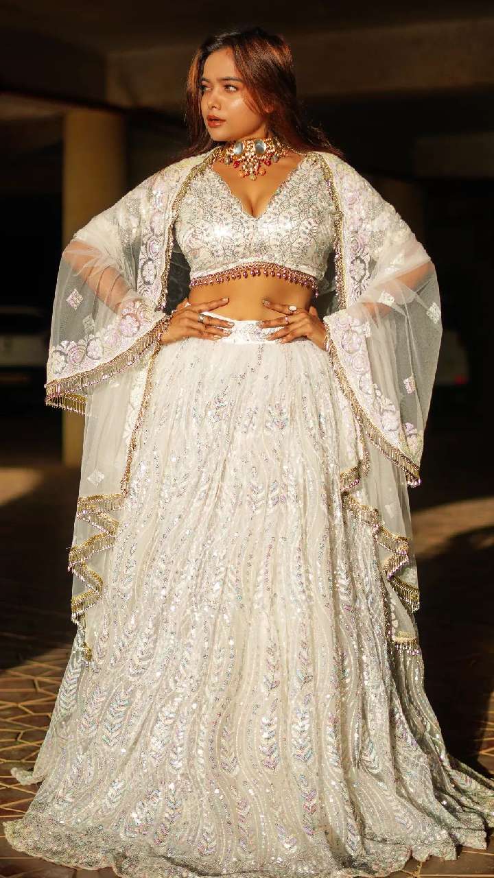 छोटे कट की लड़कियां मनीषा रानी के ऑल व्हाइट गोटा वर्क लहंगे से इंस्पिरेशन ले सकती हैं। इसके साथ आप भी चोकर नेकपीस और चोली में टसल लेस लगवा सकती हैं।