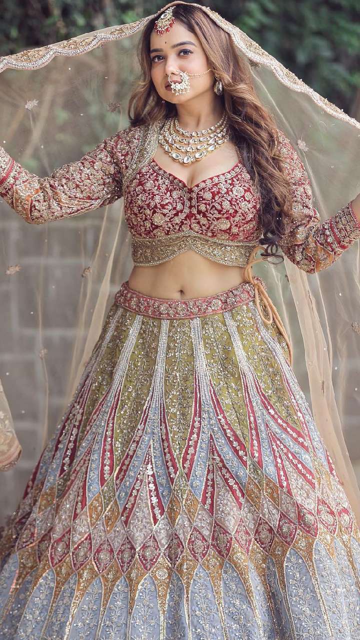 हैवी ब्रेस्ट पर आप इस तरह के लीफ शेप ब्लाउज भी स्टाइल कर सकती हैं। ब्राइडल मनीषा के इस लुक से आइडिया ले सकती हैं।