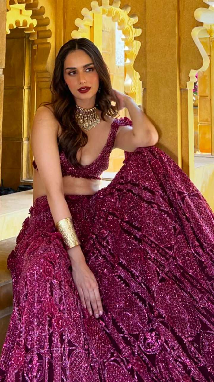 बनारसी लहंगे के साथ एक्ट्रेस का डीप वी नेक ब्लाउज रॉयल लुक दे रहा है। आप इसे फेस्टिव सीजन में आसानी से बनवा सकती हैं।